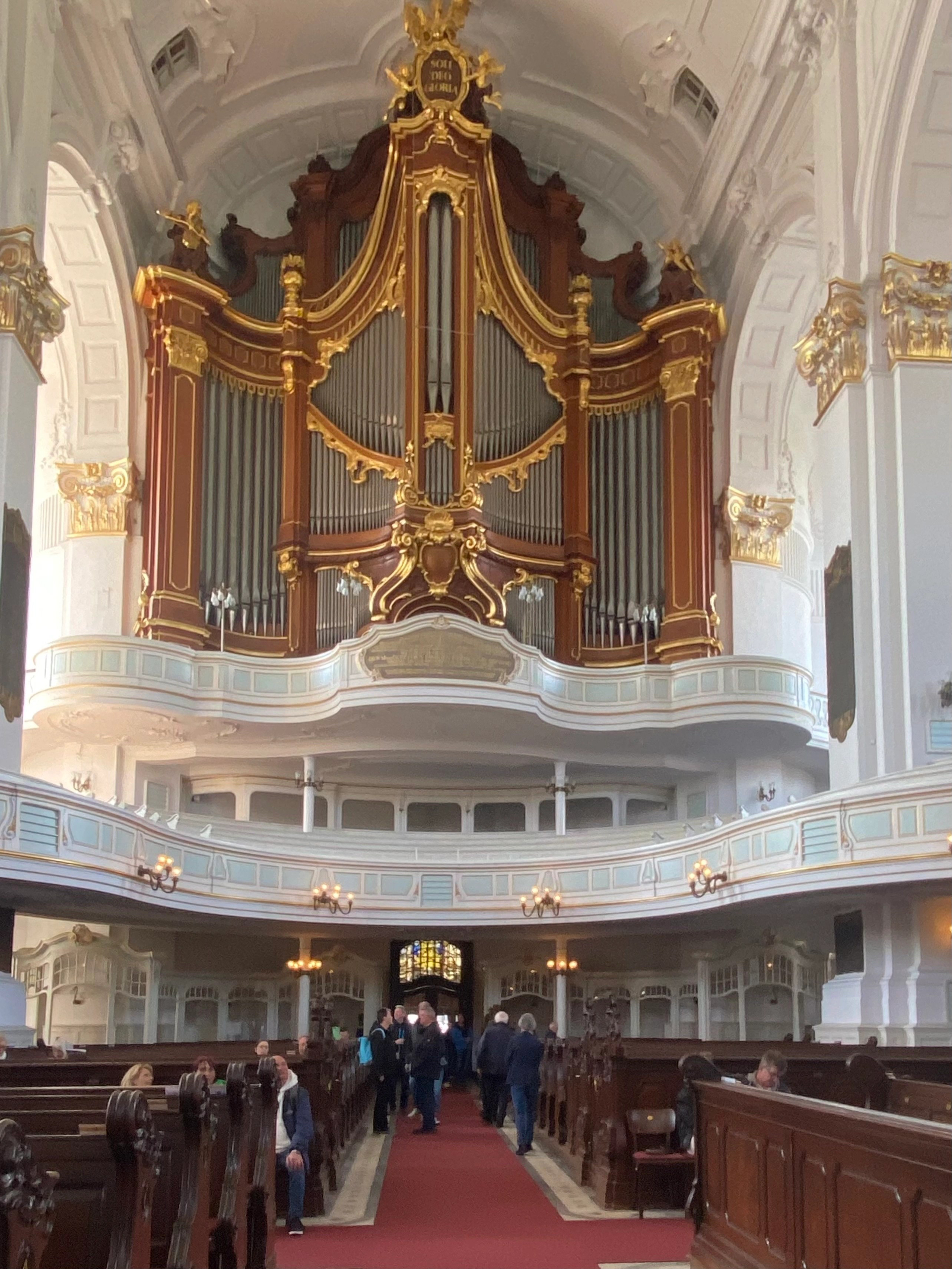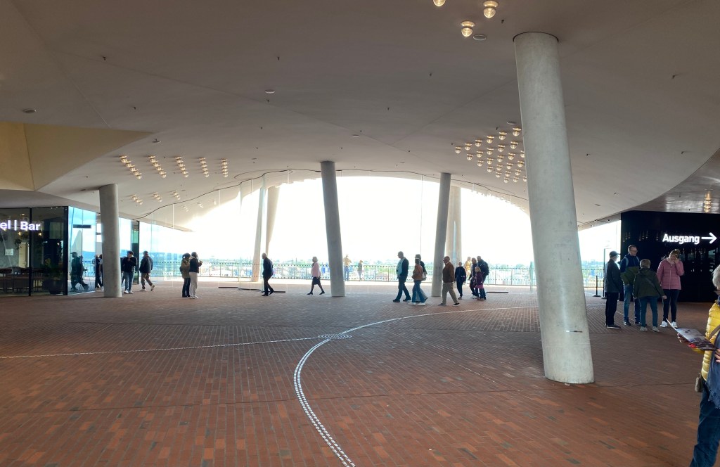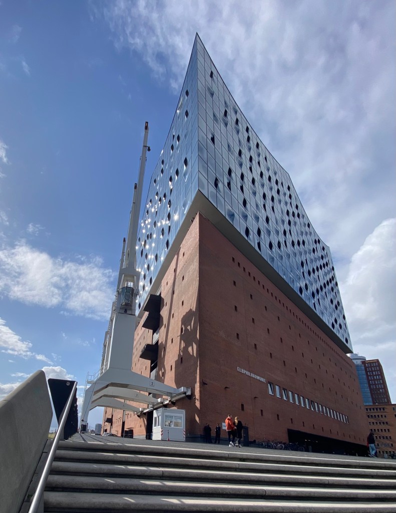….the sweeping curves of the balcony in the baroque St Michael’s Church, and the magnificent Elbphilharmonic like a great ship berthed in the harbour